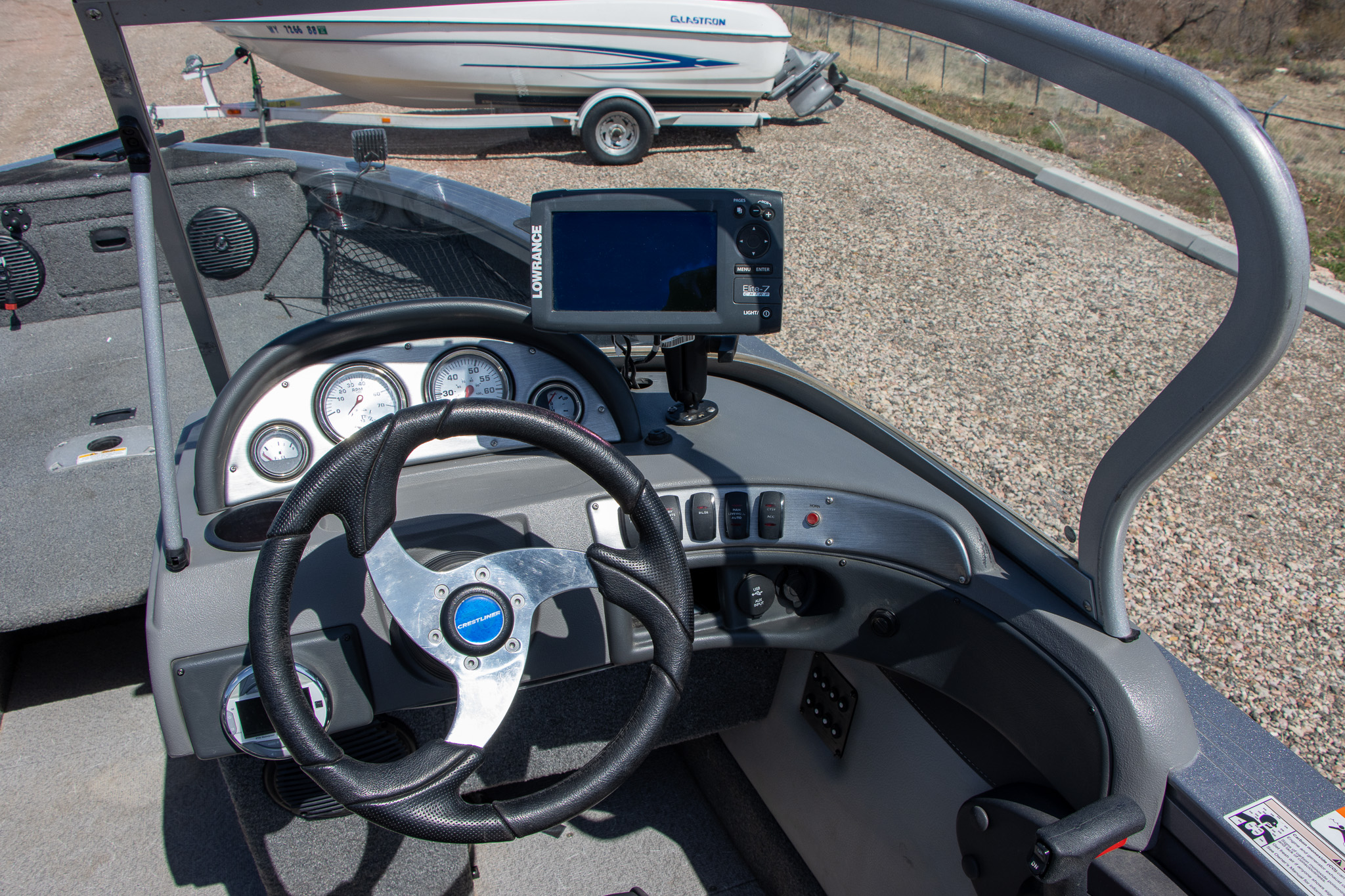 • Lowrance Elite 7 CHIRP mounted on the console.