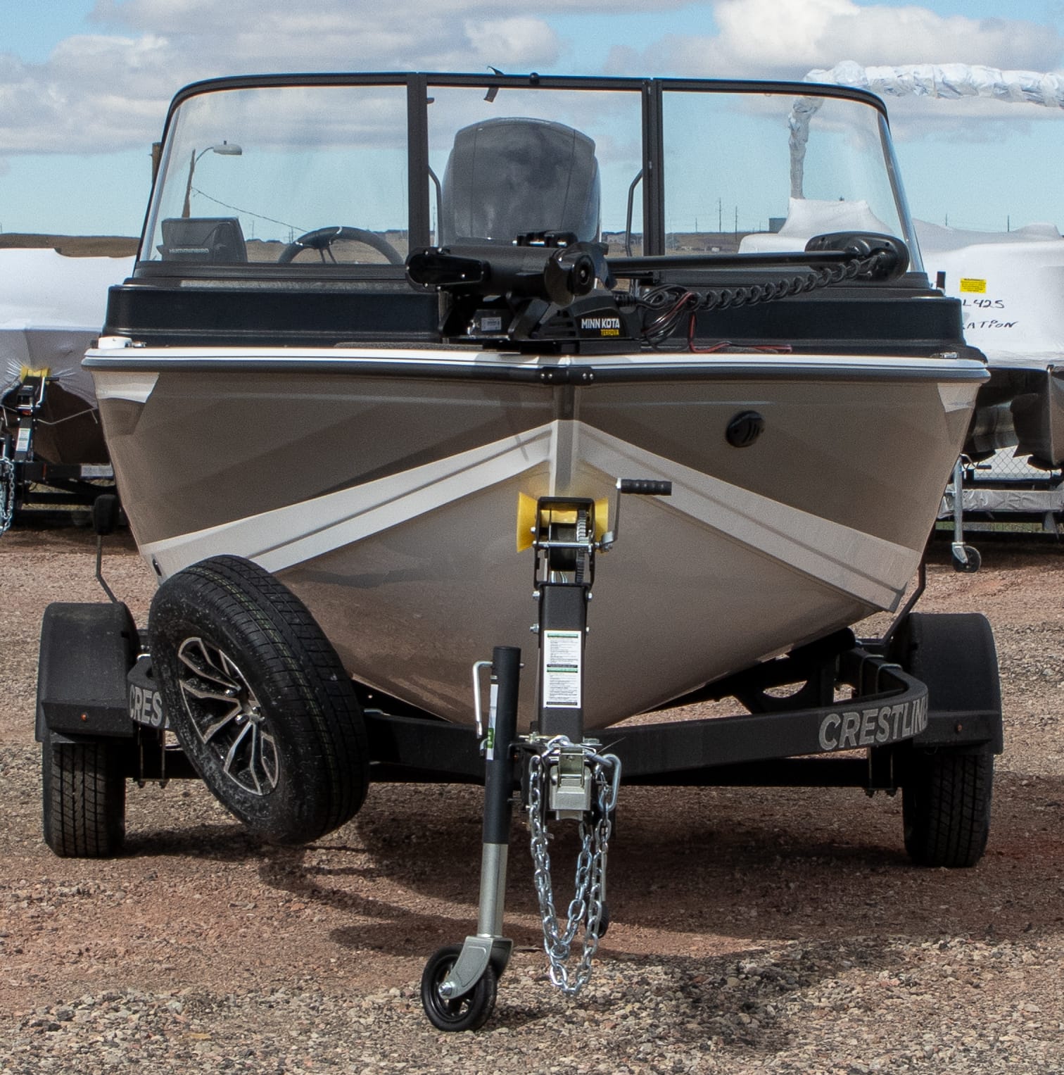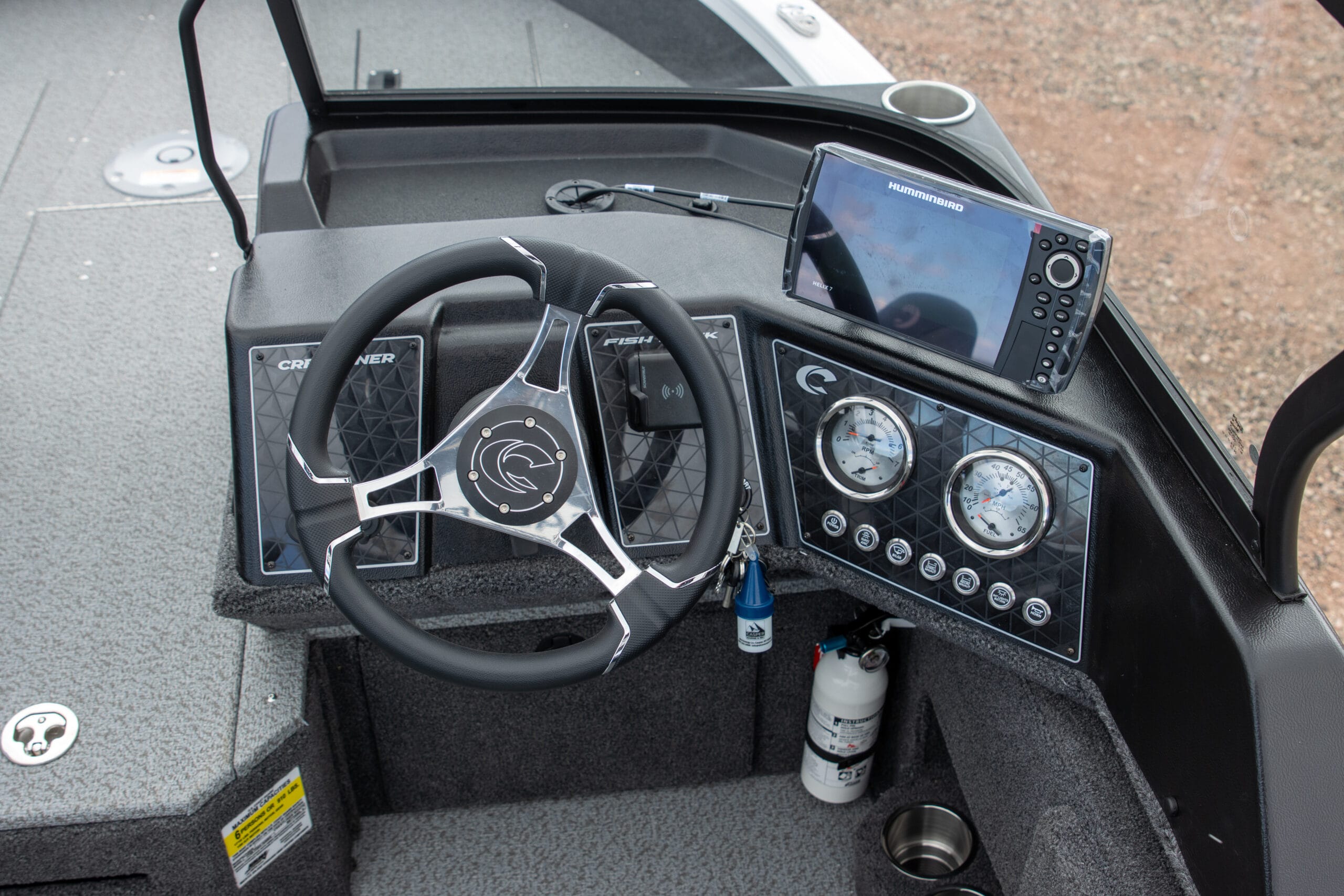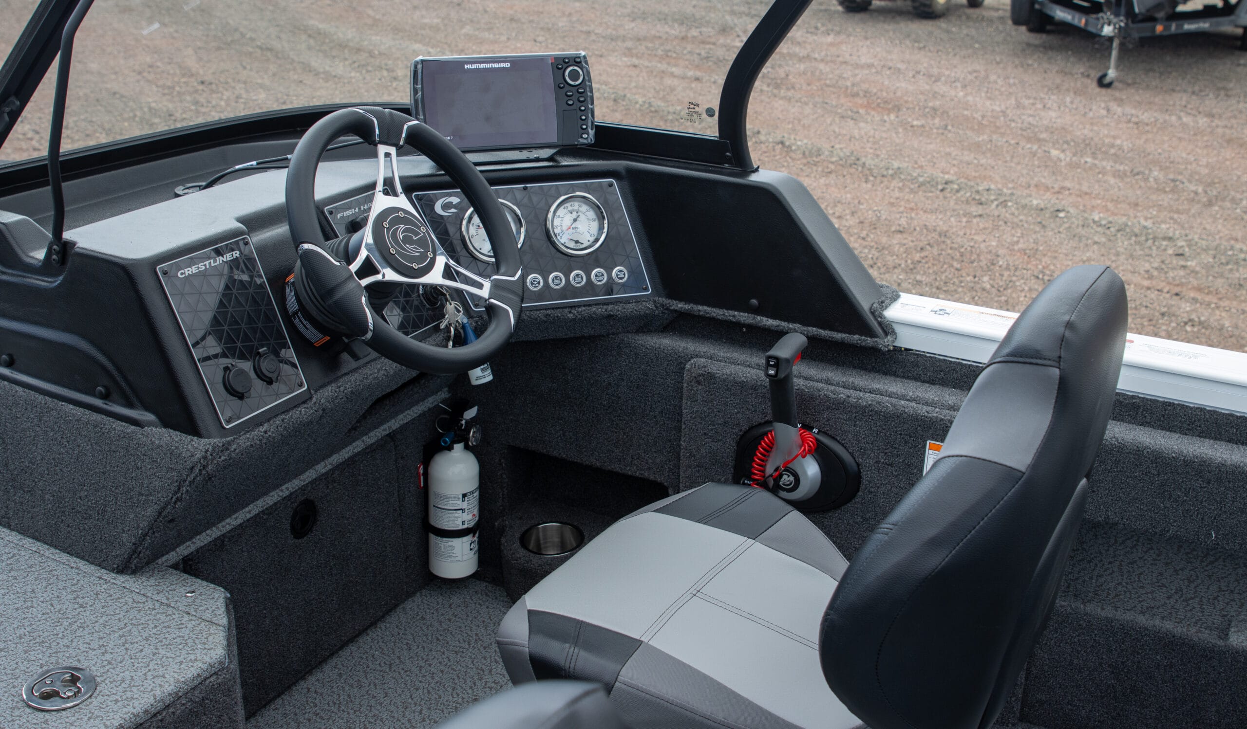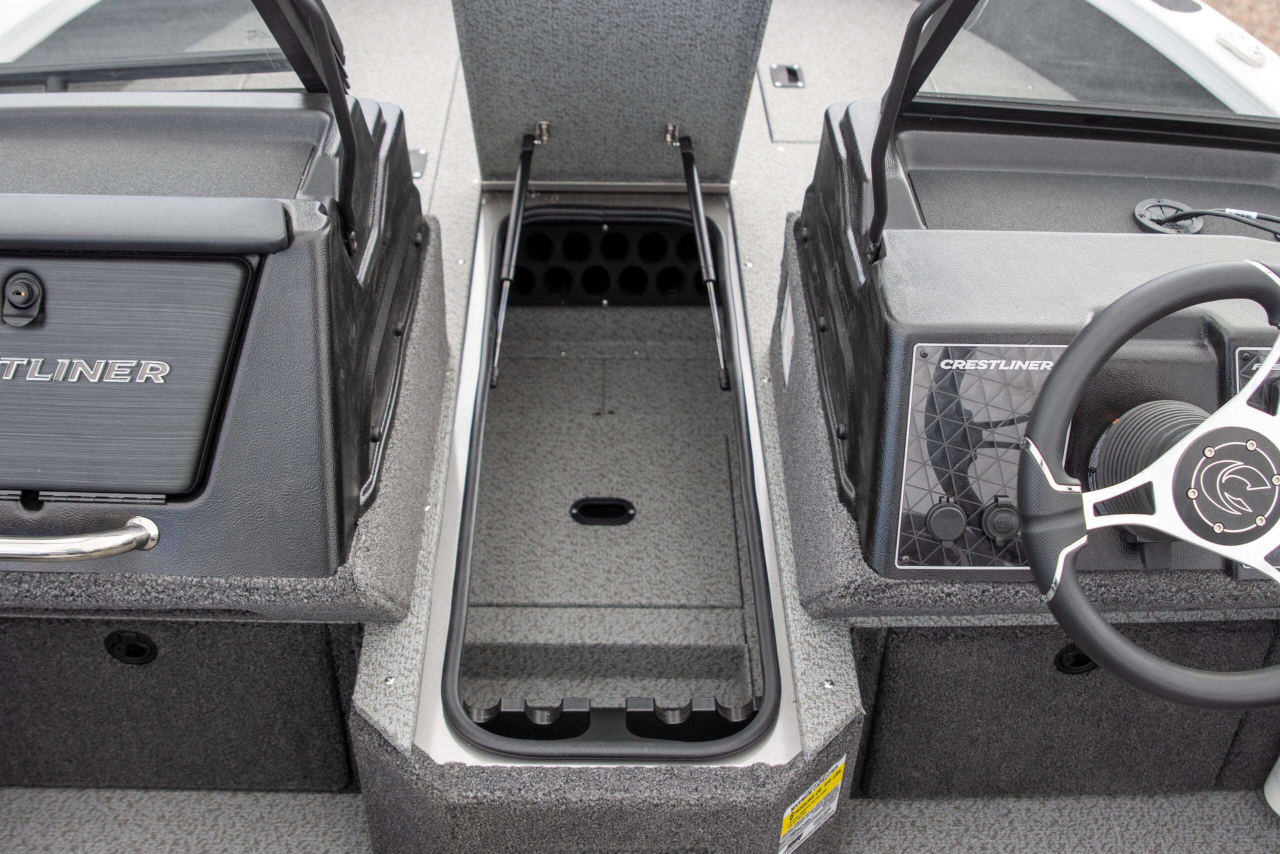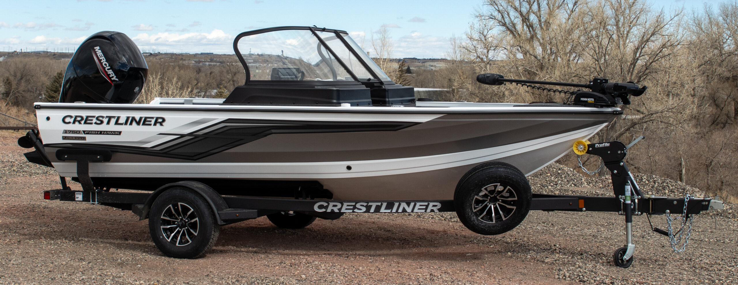 • Platinum Edition Package: Compression latches, stainless steel. Platinum Edition hullside badge, 3D chrome, hullside Crestliner logo, Cupholder, stainless steel, Steering wheel, aluminum polished w/comfort grip upgrade
