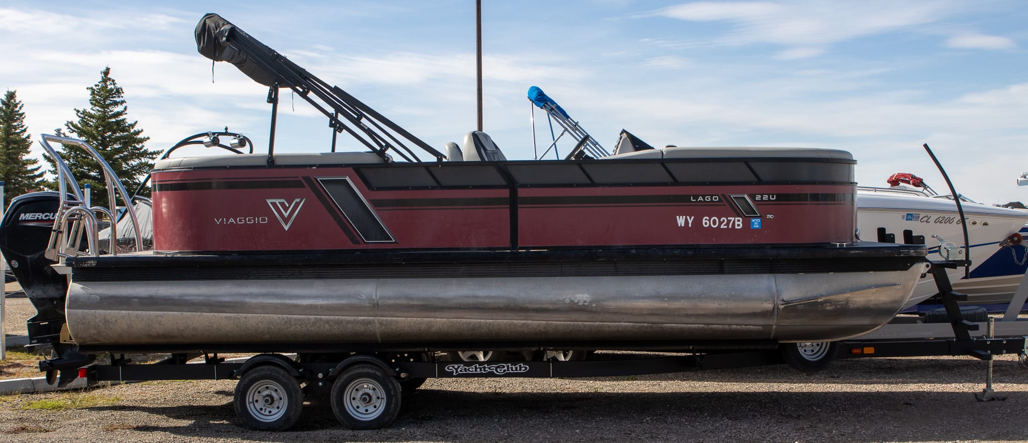 This boat has been in the Alcova Resort rental fleet for 3 seasons. Still has a ton of life and ready to get you on the water for a great deal. Professionally serviced twice a year and has 850 hours on the motor. Interior of the boat is in great condition, no tears or split seams on the vinyl or flooring. There are various levels of dents and scratch’s to the exterior fence and tunes due to being a rental. This unit does have some damage to port aft corner deck. Call us today about this mechanically sound and affordable triple toon and be ready for next season.