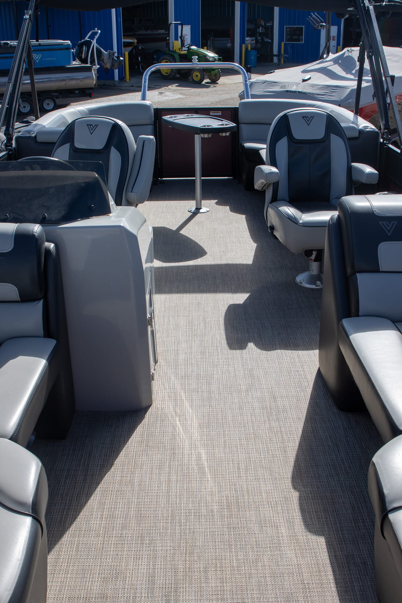 - Tripletoon Performance Package for 22′: Lifting Strakes, Underdeck Performance Shield, 56 gallon In-Transom Fuel Tank, Seastar Hydraulic Steering